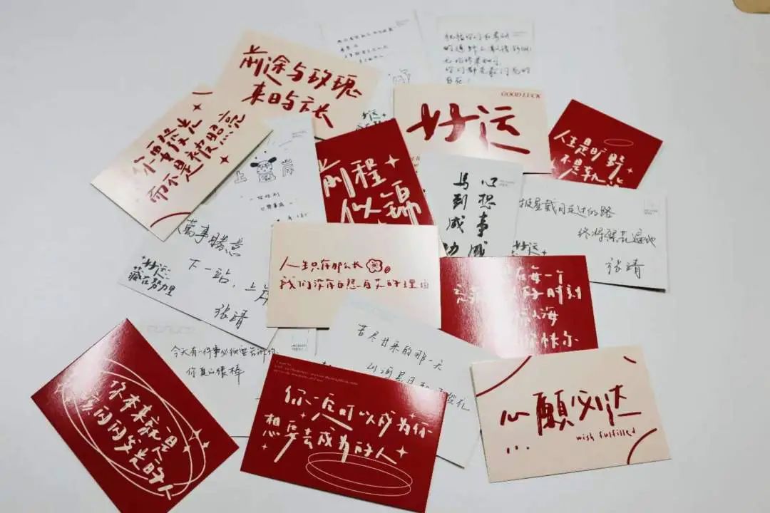 学院为2024届考研学子精心准备了预示着“大吉大利”的橘子,“平稳上岸”的苹果,“榜上有名”的棒棒糖,“好事发生”的士力架,“满足心愿”的薯愿,写满祝福语的明信片,饱含着学院对考研学子浓浓关爱和殷殷祝福。