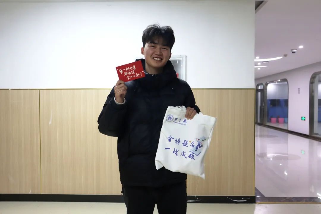 学院领导老师们将“上岸大礼包”发放到每一位考研学子手中,悉心叮嘱考研学子们要合理安排时间、注意身体健康,有效把控学习节奏、稳步提高学习效率。并叮嘱同学们在考研冲刺阶段,要注意防寒、劳逸结合,保持良好的状态迎接考试。面对老师们的殷殷关切,同学们纷纷表示将牢记嘱托,坚持到底,全力备考,不负众望。