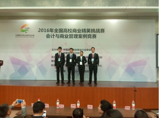 2016年4月9日-10日,由中国国际商会商业行业商会与中国商业会计学会主办的“2016年全国高校商业精英挑战赛会计与商业管理案例竞赛大陆地区总决赛”在对外经济贸易大学举行,经过初赛网上答题,复赛网上提交案例分析,和现场PPT展示答辩,会计学院代表队获得决赛“一等奖”和“最佳院校组织奖”。