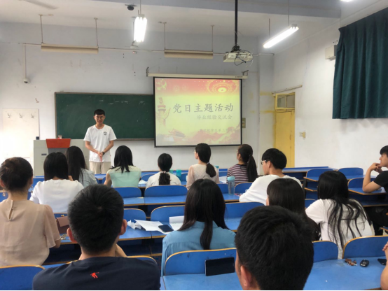 首先,由毕业生党员依次分享这四年来的心路历程、付出的汗水以及不为人知的努力,并且热情的向大三的学弟学妹们交流经验、畅谈对未来的期许。找到心仪工作的蔡昌浩分享:“要有战略的眼光,提前做好规划,珍惜每分每秒,未来是留给有准备的人。”还有准备出国的袁涵说道:“希望我们时刻保持党性修养,无论在国内外,有高度的使命感和责任心都是成功路上的指明灯。”大家都表达了对学习和工作的美好愿望,但每个人都无一例外的渴望回到大一的充足时光,多出去走走,见见要好的朋友,为自己的青春不留遗憾。