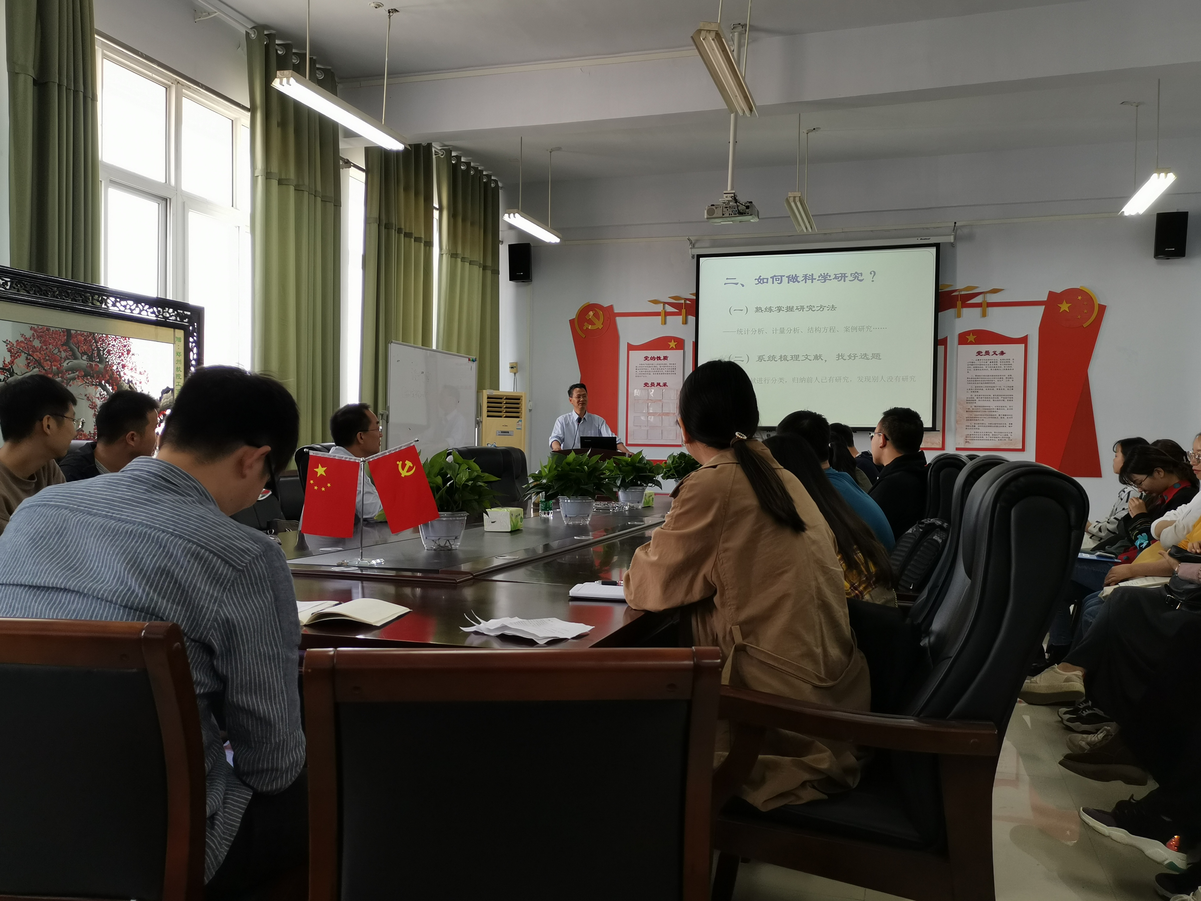 为迎接校庆的到来,提升研究生的科研兴趣和能力,2019年10月8日,研究生党支部于我院会议室举办“迎校庆,爱科研”主题党日活动,会议特别邀请刘振教授为支部研究生做《研究生如何做科研》学术报告。支部全体党员、预备党员和入党积极分子参加会议。会议由党支部书记闫俊周主持。