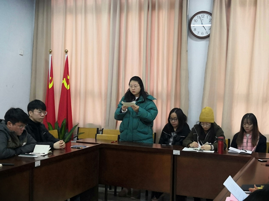 最后,支部书记尚福星发表讲话,她对三名成为正式党员的同志表示祝贺,对支部今后的组织生活进行了规划,并对全体党员们提出更高的要求,要求党员要时刻保持党员的先进性,努力学习的党的理论知识,遵守党的章程,履行党员义务,严守党的纪律,要有所付诸行动,不忘初心,牢记党的使命,努力成为一名优秀的共产党员,为支部其他预备党员、发展对象和积极分子树立榜样。