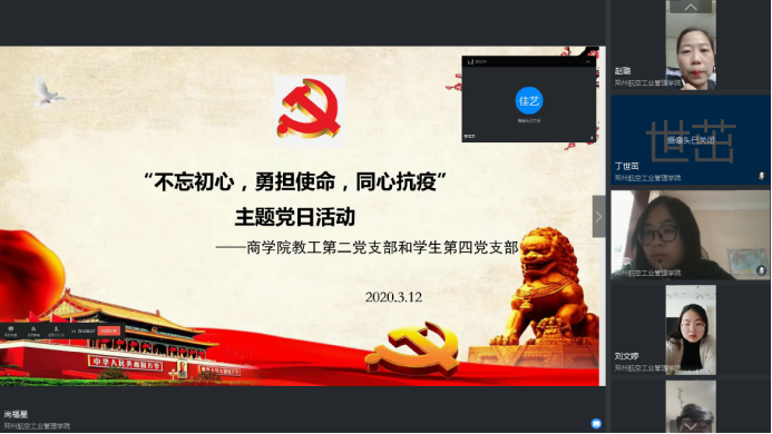 最后,赵璐作总结发言,她表示,此次师生党支部联合线上主题党日活动十分成功,内容丰富,视频会议的形式了“互联网”在党建工作中的重要作用,今后可以更多地开展线上活动,加强师生党员间的沟通与交流,同时,党员干部应进一步发挥基层党组织在新冠肺炎防控中的领导作用和党员的先锋模范作用,不忘初心,勇担使命,同心抗疫。