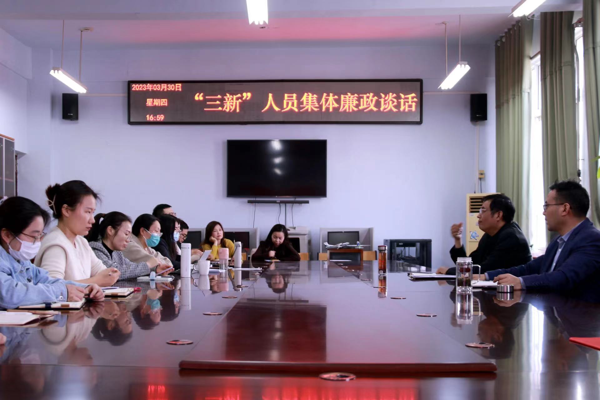 3月30日下午,我院于07B520会议室召开“三新”人员廉政集体谈话暨廉洁家风建设座谈会,院党委书记詹国文,院党委副书记、副院长赵春清以及近三年“三新”人员(新晋升职务人员、新转岗人员、新进教职工)参加会议,会议由赵春清主持。